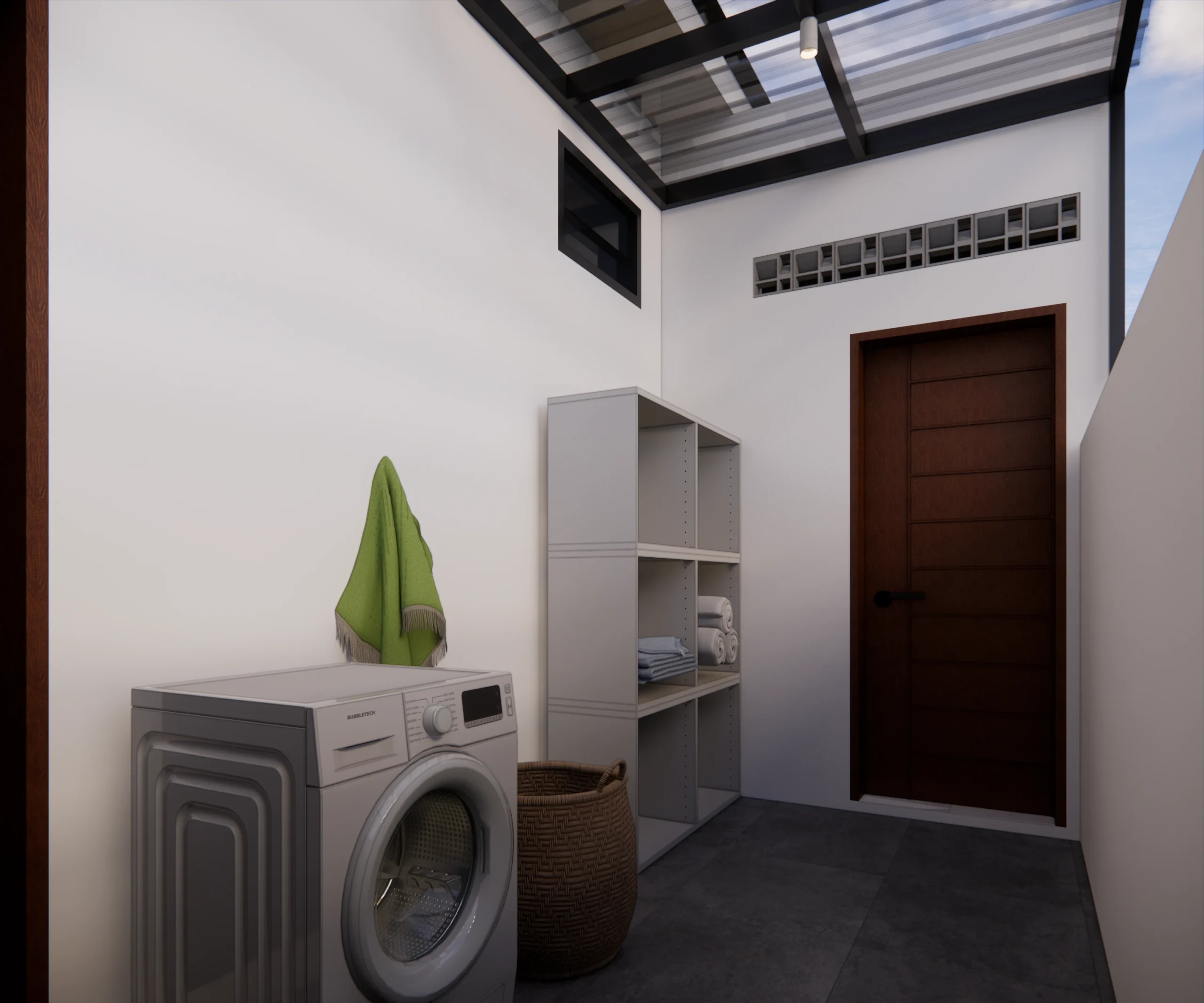 Area service seperti ruang laundry juga dirancang dengan tata ruang efisien, memaksimalkan fungsi dalam area terbatas tanpa mengorbankan estetika. Penggunaan warna netral serta pencahayaan alami membuat seluruh ruangan terasa lega dan bersih.