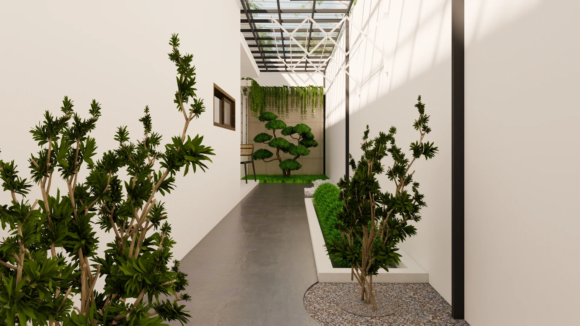 Pada bagian interior, MT House menghadirkan ruang dengan dominasi warna terang dan material kayu alami yang menciptakan atmosfer menenangkan. Area taman dalam rumah memberikan ruang hijau yang memperkuat koneksi dengan alam, sekaligus meningkatkan sirkulasi udara dan pencahayaan alami.