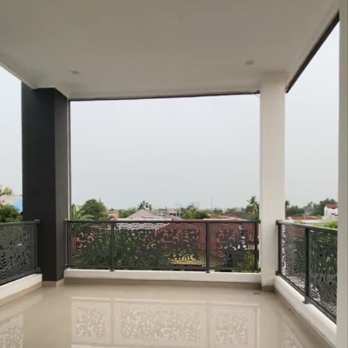 Ruang laundry berada di balkon belakang rumah dengan pemberian partisi dinding roster untuk pemisah antara tempat mencuci dan jemuran. Dan pada bagian depan, terdapat balkon yang luas untuk melihat pemandangan, juga cocok menjadi tempat berkumpul dan bermain bersama keluarga.