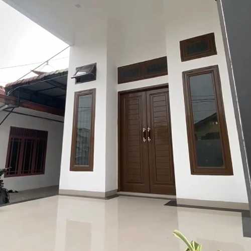 Proyek renovasi rumah Ibu Erwi dengan desain awal 1 tingkat bergaya tropis menjadi 2 tingkat dengan gaya minimalis modern.